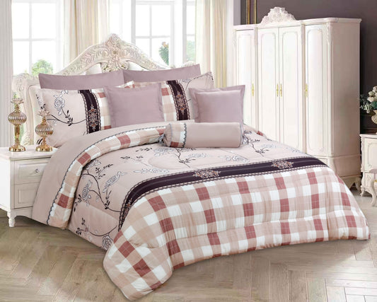 Comforter sets 9 pieces-Brown-Beige-Embroidered