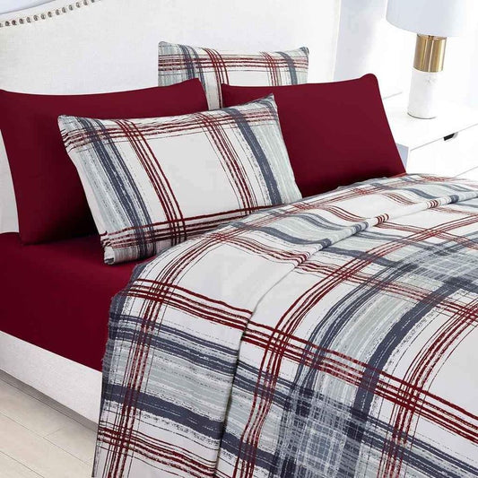 6 Pcs Bedsheet Set -Hotel At Your Home - Maroon/White